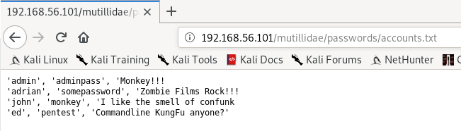Tadaa, clear tekstinä käyttäjätunnukset ja salasanat, ei tarvitse edes hasheja alkaa murtamaan. Tietystihän kyseessä on erittäin vulnerable applikaatio ja oikeasti tälläisen löytäminen olisi jo onnekasta ja erittäin huolimatonta ylläpitäjältä, eihän kukaan järkipäinen laittaisi salasanatietoja internettiin clear tekstinä! Right?