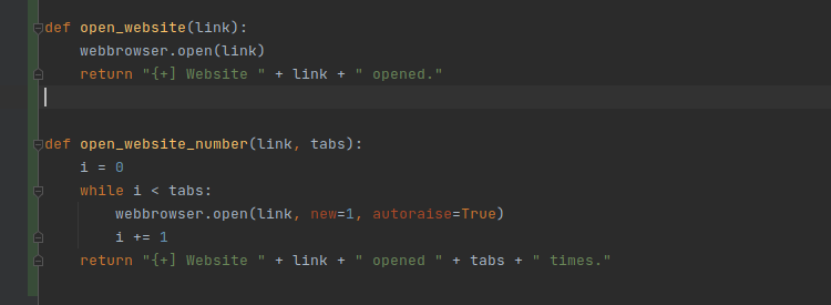 First of all, we’ve actually laid out the foundation for extra features such as these pretty well: if we want the program to do something different from the usual, we simply add an if statement and say that if this word is a part of the command, do this instead. So adding any new function to the program isn’t actually complex by itself: the execution of the function is the important bit.