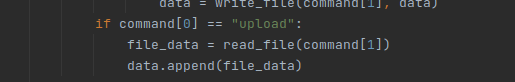 First of all, both the server and the client need both the write_file() and read_file() functions. When downloading our server doesn’t need to use the read_file nor does the client need the write_file, but when we do the opposite, they will. Just copying and pasting these functions will do. Now after doing that, we still need an if-statement in the server for when the command has the word “upload” as the first argument: this is simply so we can tell it what to do.