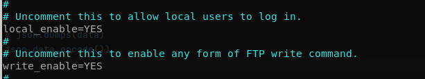 Those two commands will get the job done. Next, we need to configure some settings. The file is located in /etc/vsftpd.conf