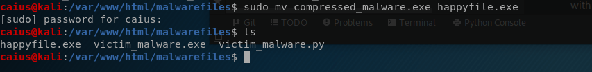 sudo cp victim_malware.exe /var/www/html/malwarefiles/